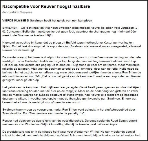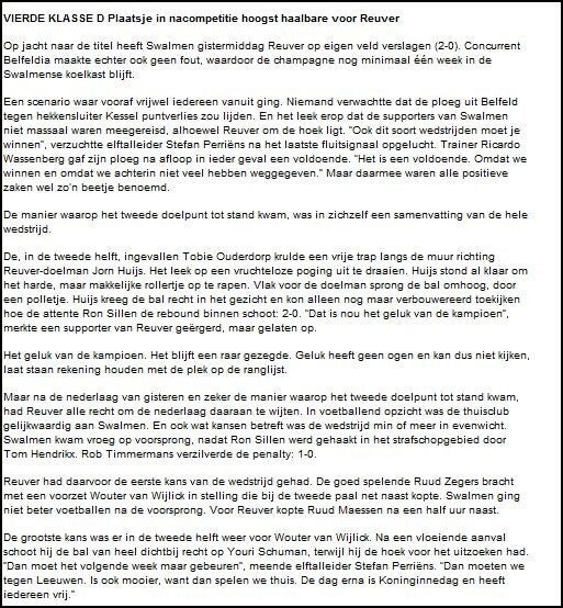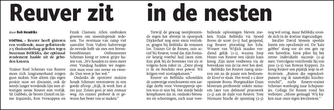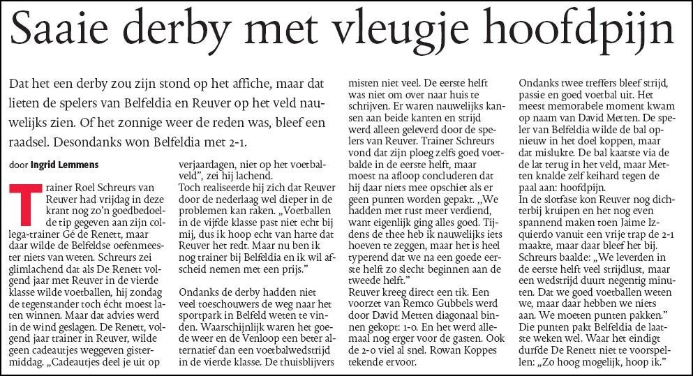 Belfeldia-Reuver Uitslag 2-2