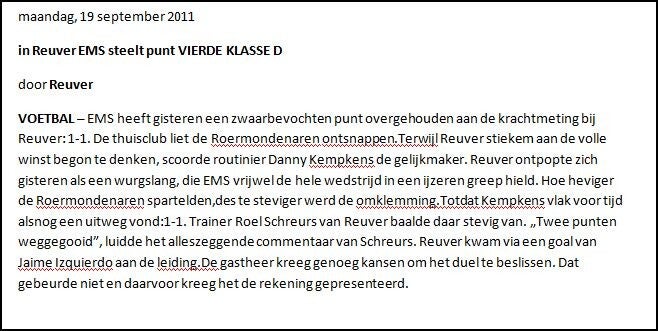 Roggel-Reuver Uitslag 3-3 Competitie